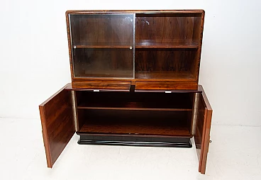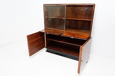 Fully renovated ART DECO showcase. It was made in the 1930s of the last century and was designed by Jindrich Halabala for ÚP Závody Brno. Material: wood, walnut veneer. The cabinet was fully restored to a high gloss using polyurethane and is in excellent condition.