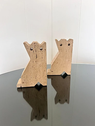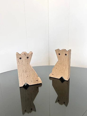 Pair of travertine cat-shaped bookends by Enzo Mari, 1970s.
