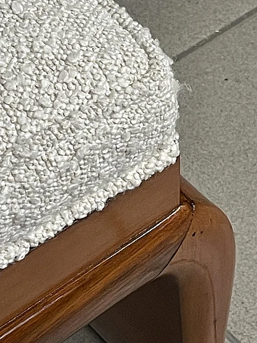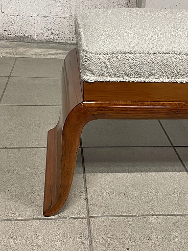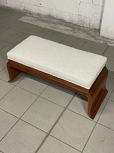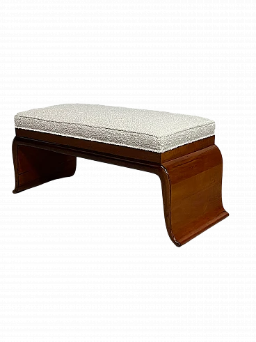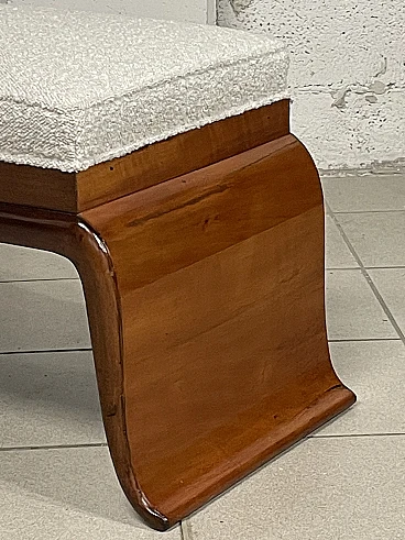 1940s Art Deco bench in pear wood and new white bouclé fabric upholstery. Its elegant structure with shaped legs denotes the style and character of this piece of furniture. Fully restored.