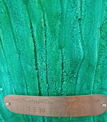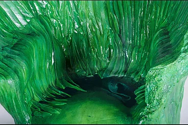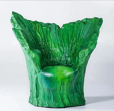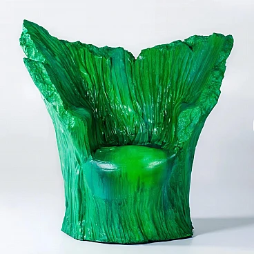 Green armchair designed by Piero Gilardi in 2012 and produced by Gugliermetto Experience. Piero Gilardi brings the natural element inside the home: a green Malachite rock, emerging from the sea after an eruption, forms a rock flower that, beaten by the waves, becomes the space for hospitality. Piero Gilardi creates a comfortable and imposing armchair from nature. Materials: Frame and insert in plywood and PVC and body in sculpted polyurethane. Armchair in limited edition of 30. Numbered armchair with certificate of authenticity.