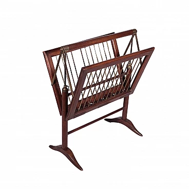 Closable magazine rack, stained beech wood, brass. Product in good condition, shows small signs of wear. One stick missing.
