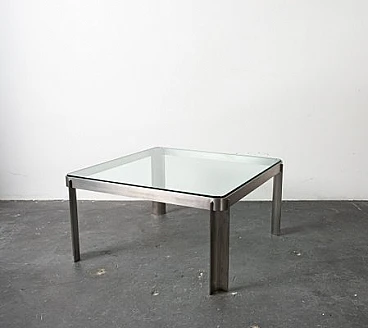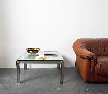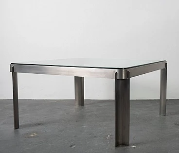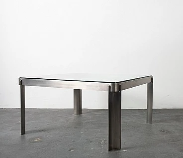 T113 coffee table in aluminium and glass by Tecno, 1970s