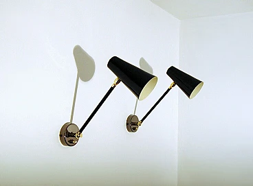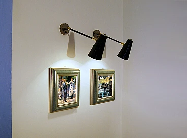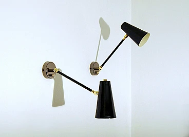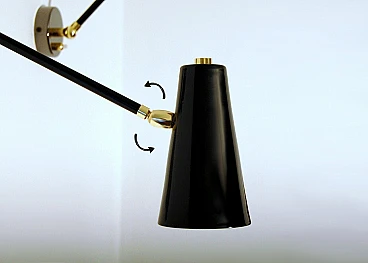 Adjustable brass and black lacquered metal wall light