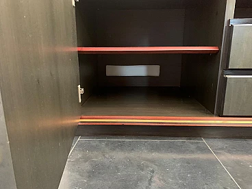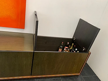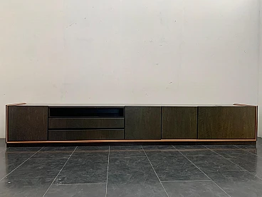 Centre designed by Vittorio Frigerio in 1981 for an upper middle-class family. Name and location will be supplied on purchase. Composition: storage cupboard 4 m long, 64 cm high and 64 cm deep. The cabinet has compartments for various needs, from accommodation for technical equipment, to accessories and various supellets. The last compartment, with an upper opening, accommodates items that require manoeuvrability from above. Inside the cabinet there is a secret drawer, with easy opening, totally invisible and not intuitable, a photo can be sent on request.