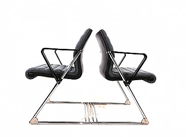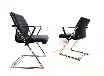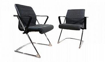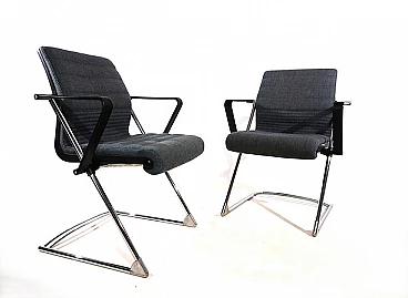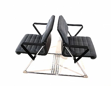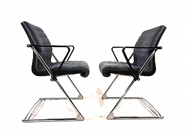 Pair of Z armchairs by Prof. Hans Ullrich Bitsch for Drabert, 1980s. These pieces with grey/blue fabric upholstery and black plastic shell are in good condition. The plastic parts show only minor signs of wear. The chrome structures are in perfect condition. The Z armchair can be used as a conference chair in the office or as a dining room chair. Prof. Bitsch designed this clear and ergonomically designed Z chair for the German manufacturer Drabert in the 1980s. Bitsch also created several classics for the Scandinavian producer Kusch. Drabert was one of the most important office furniture manufacturers in the 1960s and 1970s, creating office furniture of the highest quality. Seat height: 47 cm. Seat depth: 42 cm.