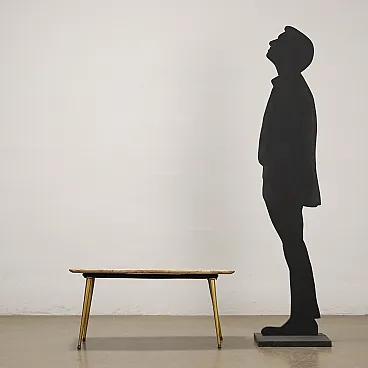 Rectangular coffee table with brass-plated metal structure and marble top. Italian production, 1950s-1960s.