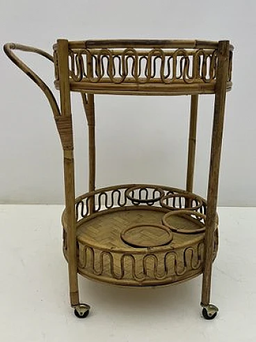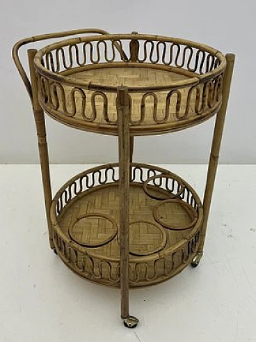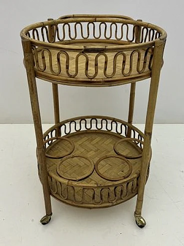 Round bamboo and wicker cart attributed to Franco Albini, 1960s