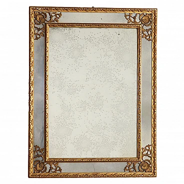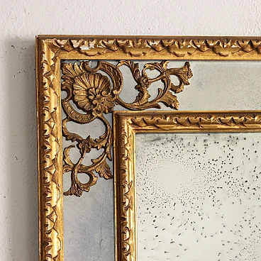 Antique mirror, with carved and gilded frame. Italian production, 20th century.