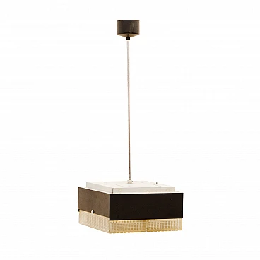 Brutalist Czechoslovakian metal and glass chandelier, 1970s