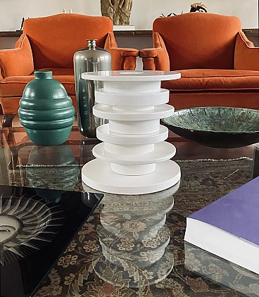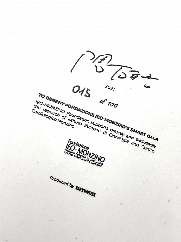 Postmodern white ceramic flower vase designed by Kengo Kuma for Bitossi, Italy 2021. Limited edition 015 of 100. World Cancer Day 2022: a collection of designer vases to benefit the Ieo-Monzino Foundation. H 25 cm - 24 cm diameter. Mark on base. Good condition, minor defects. Check images.