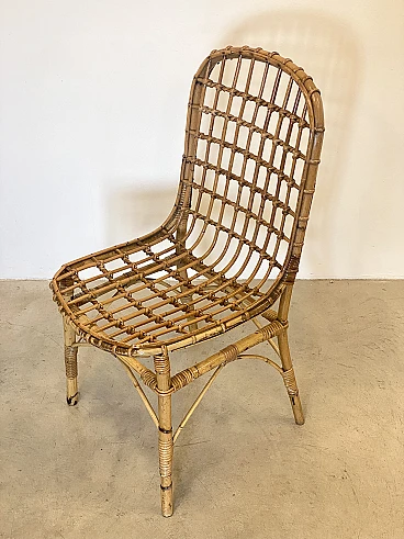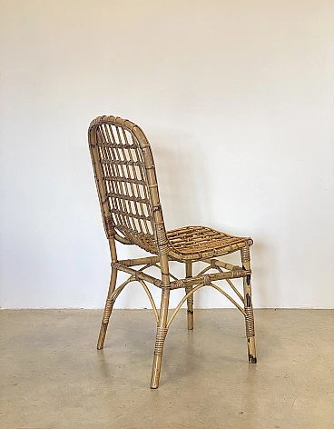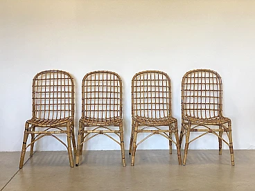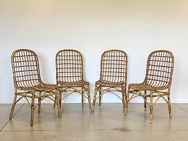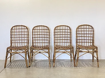 4 Rush and bamboo chairs in the style of Tito Agnoli, 1970s