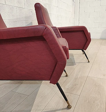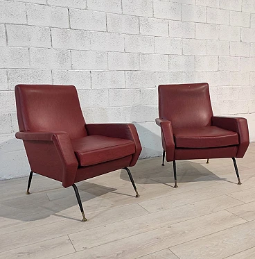 Pair of armchairs in skai, iron and brass, 1960s