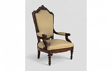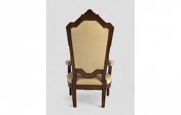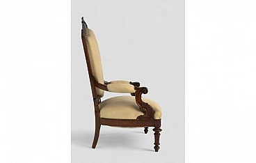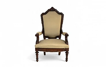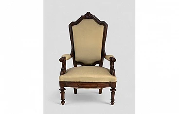 Wooden armchair with beige fabric seat and backrest, 1980s