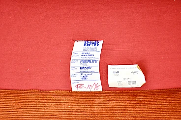 Pair of velvet armchairs with fibreglass shell. Designed by Mario Bellini for B&B Italia. Seat height: 40 cm. Stamped B&B Italia. Can be hung together. Wear due to time and age.