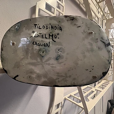 Pair of solifleur ceramic vases in the shape of a prickly pear shovel, one of the icons of Mediterranean flora, 1960s. Handmade and signed by Stelmo, pseudonym of Stelio Mola, they bring a touch of Sardinian authenticity and tradition. Each piece depicts a prickly pear shovel, with careful detailing that enhances its natural beauty. The ceramics feature flowers on top, adding a touch of color and realism. On the bottom of each piece is the signature "Fico d'India 'Stelmo' Cagliari," guaranteeing the authenticity and origin of the work; "fico d'India" is the italian word for "prickly pear". Each piece is unique, thanks to the craftsmanship that gives unrepeatable details. Perfect for embellishing any room, these vases add a touch of elegance and tradition. Ideal for collectors and art lovers, they represent a piece of Sardinian culture. Both have slight defects.