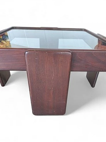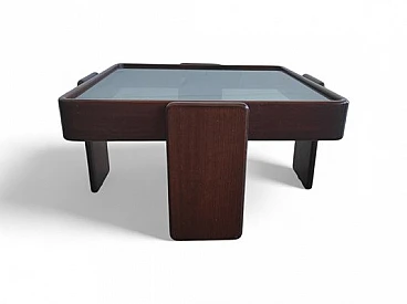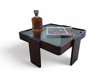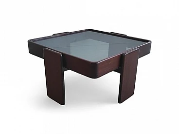 Walnut and smoked glass coffee table by G. Frattini for Cassina, 1970s