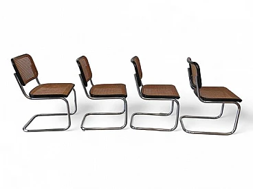 4 German Bauhaus style chairs in metal, wood and cane, 1970s