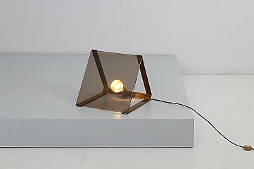Brass and smoked glass floor lamp attr. to Fontana Arte, 1960s