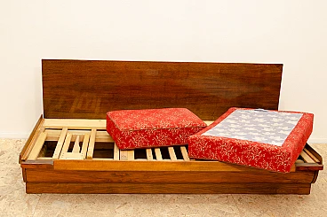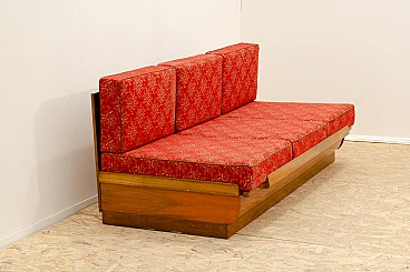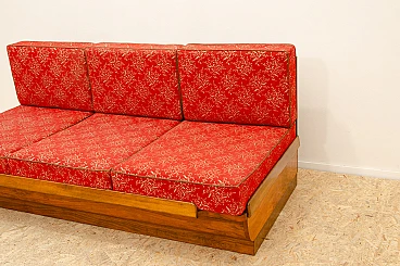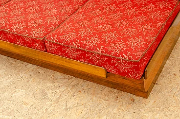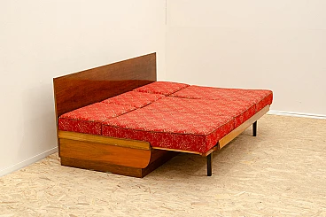 Mid-century folding sofa bed designed by Jindřich Halabala for UP Závody in the former Czechoslovakia in the 1950s. This sofa features a wooden frame veneered in walnut. The sofa is in excellent vintage condition, showing slight signs of time and use. Height: 75 cm, width: 190 cm, depth: 95 cm, open sleeping area: 190 x 135 cm. Seat height: 42 cm.