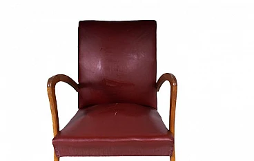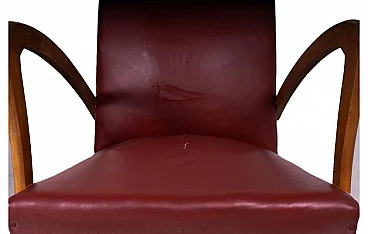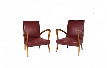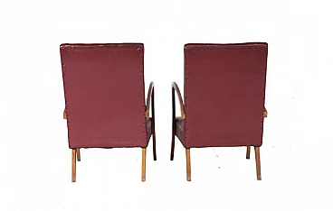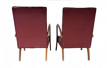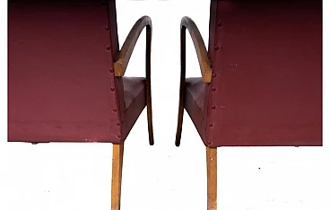 Pair of armchairs in wood and burgundy leatherette, 1970s