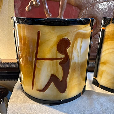Pair of amber-coloured Murano glass square wall sconces, 1970s