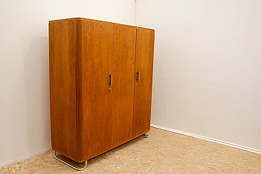 Bauhaus oak three-door wardrobe by Vichr & Spol, 1930s