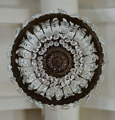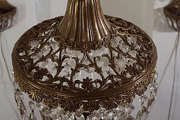 Art Deco brass chandelier with glass drops, 1940s