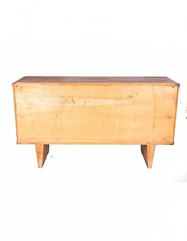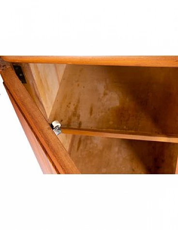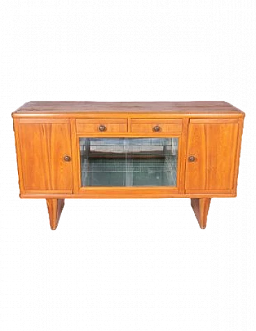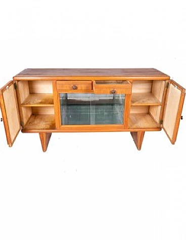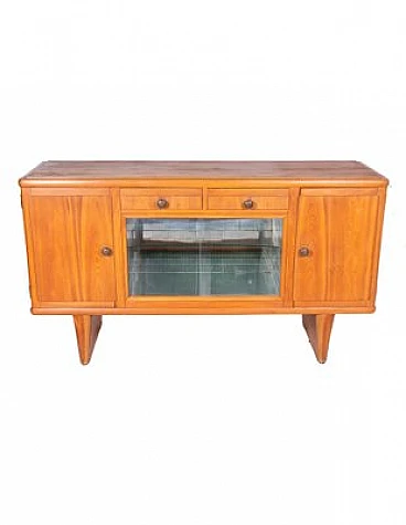 Wooden bar cabinet with central glass doors, 1950s. It has a small crack on the support surface visible in photos.