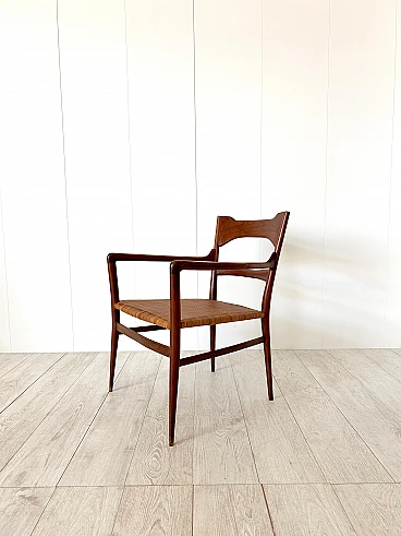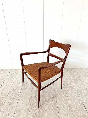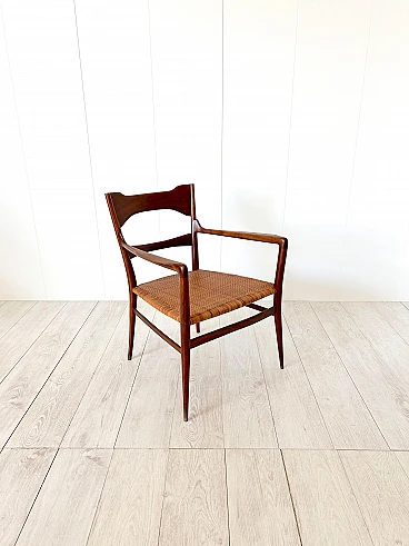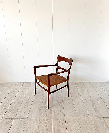 Wood and woven cane armchair by Emanuele Rambaldi, 1950s