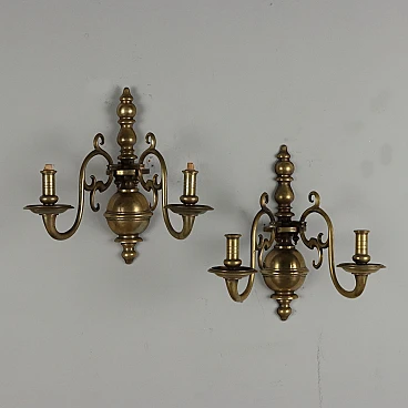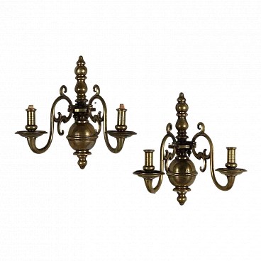 Pair of Dutch Baroque style bronze wall lights, early 20th century