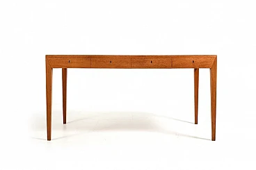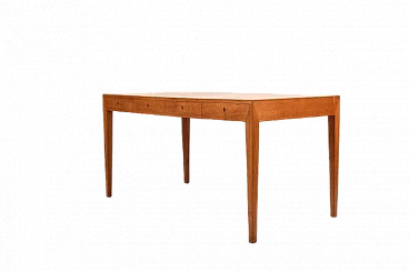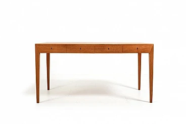 Teak desk mod. 36 by Severin Hansen Jr. for Haslev Møbelsnedkeri (Denmark), 1950s. Illums Bolighus Copenhagen mark underneath. Elegant shape with four drawers at the front. Beautifully selected teak.