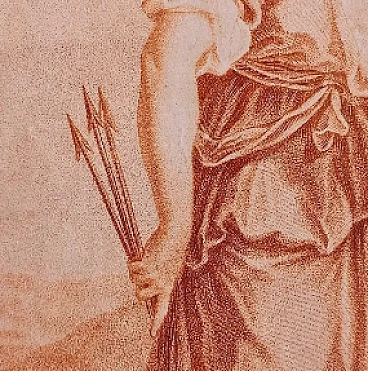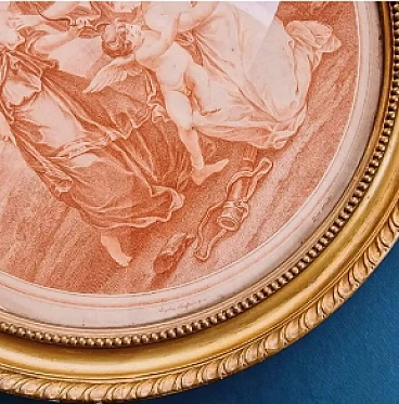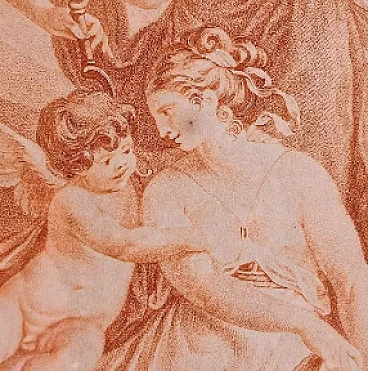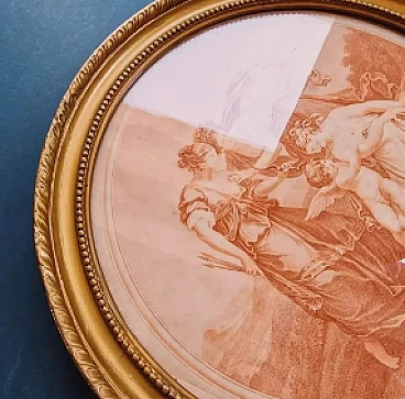 born in St. Petersburg in 1748 and died there in 1792, while still young moved to England where he was a pupil of Bartolozzi, lived in London from 1775 to 1782, engraved subjects by the most famous artists of the time, returned to his hometown and executed the portrait of Empress Catherine from the subject of Angelica KAUFFMAN, famous painter born in Chur on October 30, 1740, died in Rome on November 5, 1807 highly appreciated artist with art in her heart and a particular love for italy. Period: around 1780. In beautiful 19th-century gilded frame with antique blown glass. Size diameter: 38 cm. As always the print is accompanied by the certificate of authenticity.