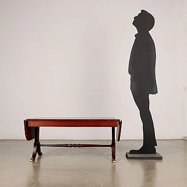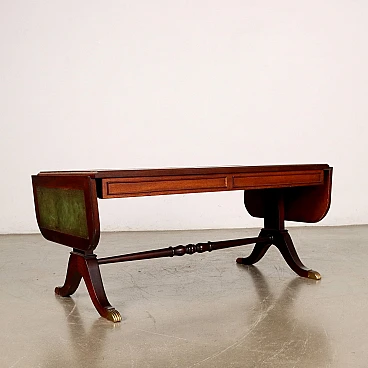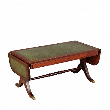 Mahogany and green Morocco leather extendable drop leaf coffee table