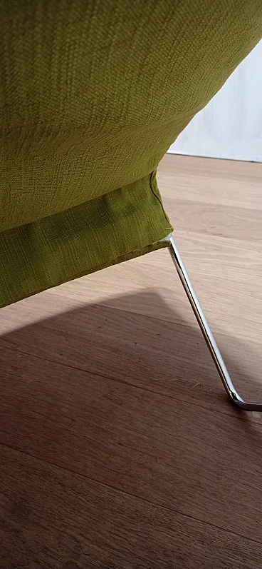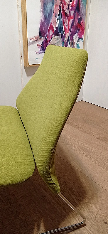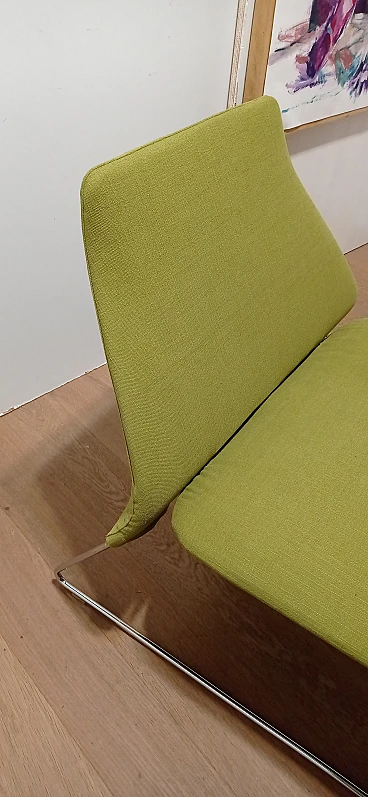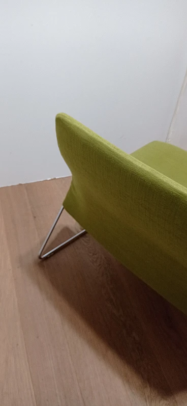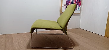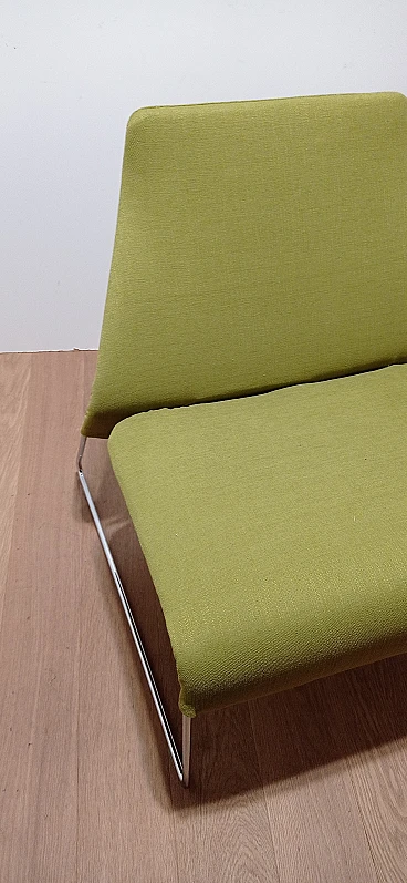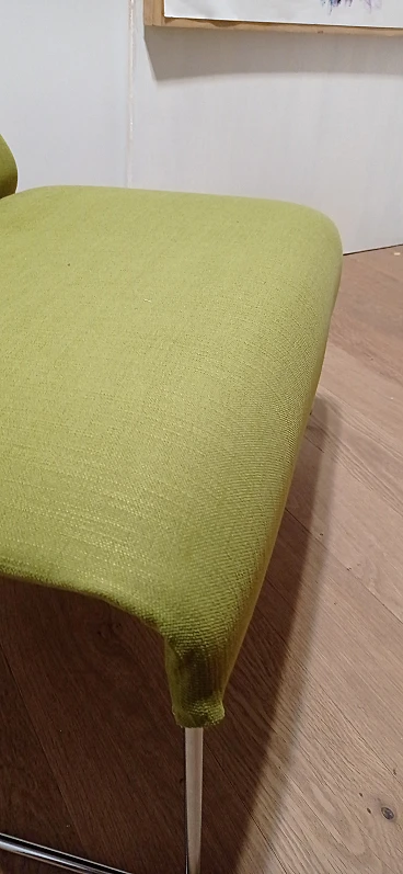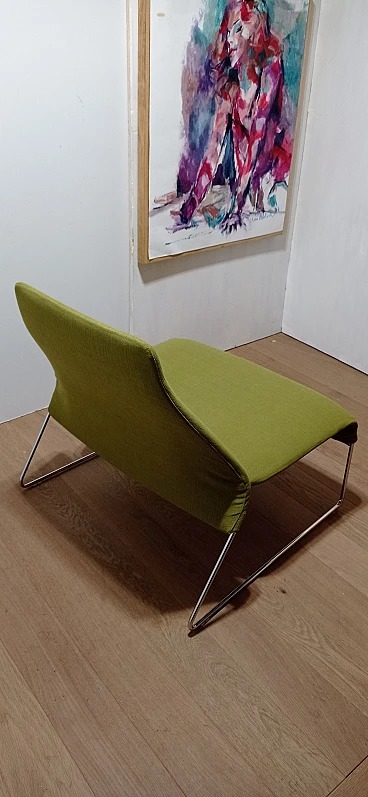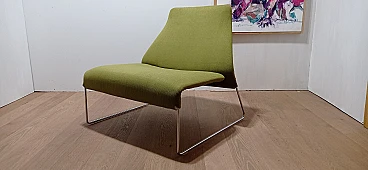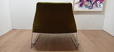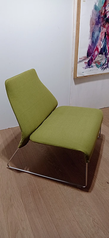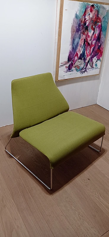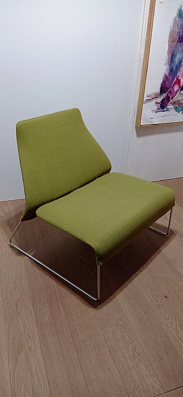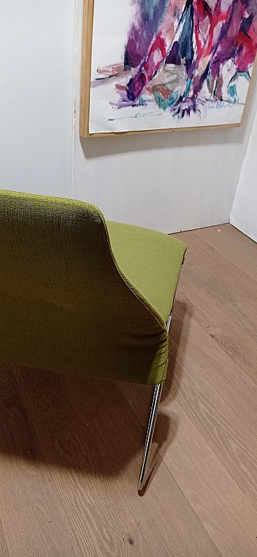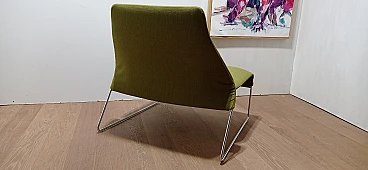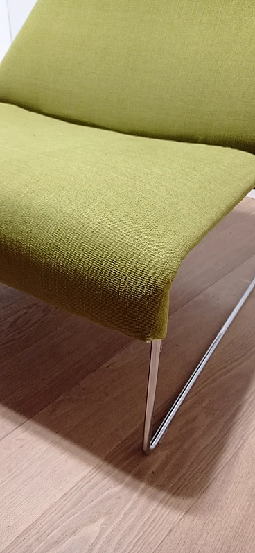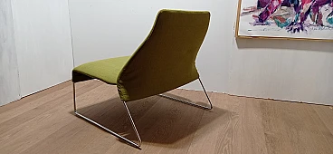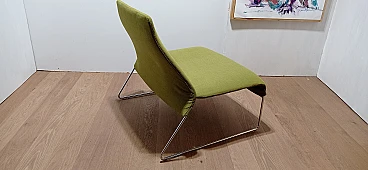 Beautiful Lazy Lounge 08 PLA80 armchair in apple green melange fabric (embossed cotton), series designed by Spanish designer Patricia Urquiola in 2005 for B&B Italia. Excellent state of preservation. Used for B&B Italia sample photos and catalogues. Chrome-plated steel rod structure and hard thermoplastic feet. Clean and undamaged, always protected with photographic film. The upholstery is fitted on a steel profile frame and soft internal padding in Bayfit® cold polyurethane foam. Lining in polyester fibre. The chair has a fabric cover that can be removed by stretching.