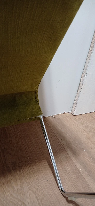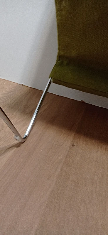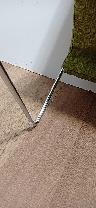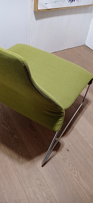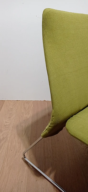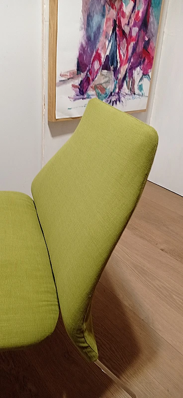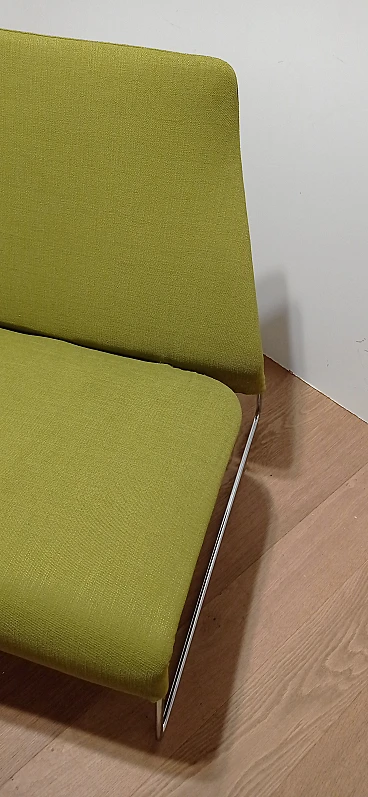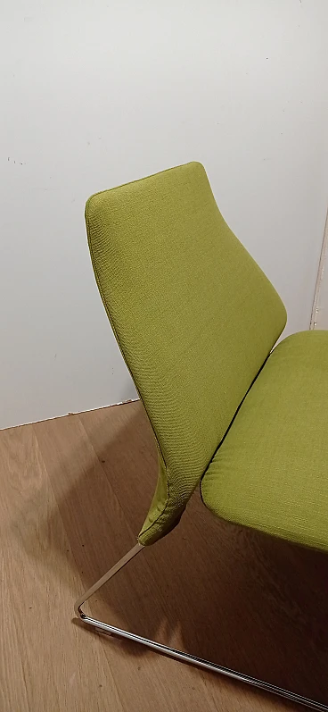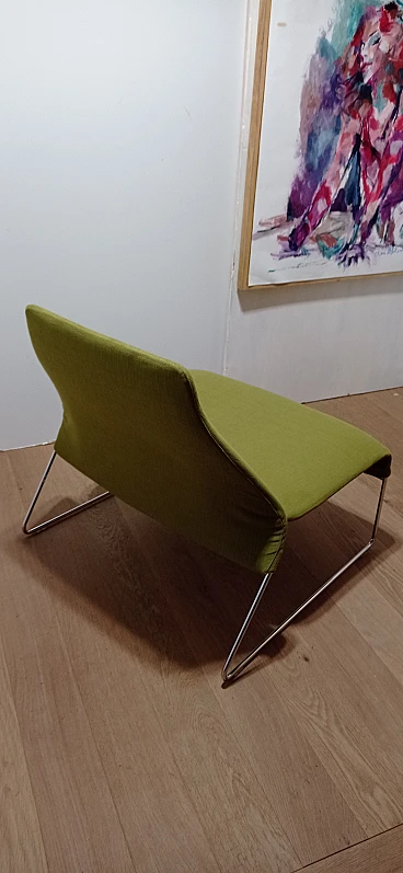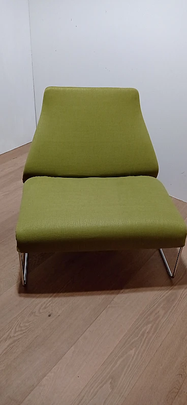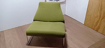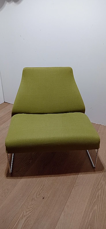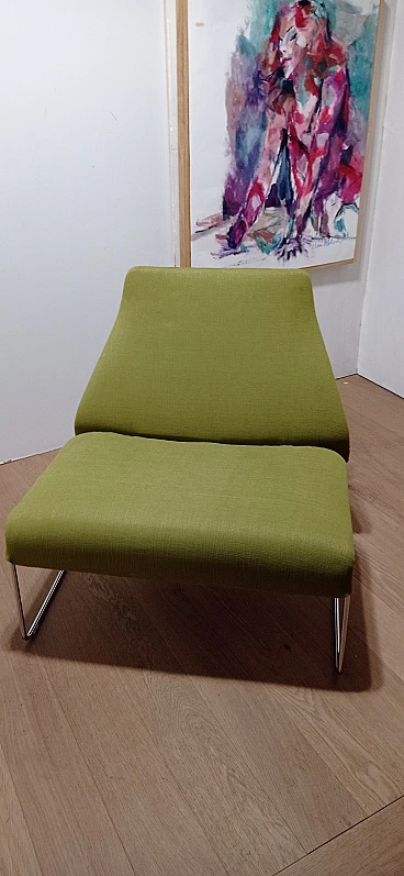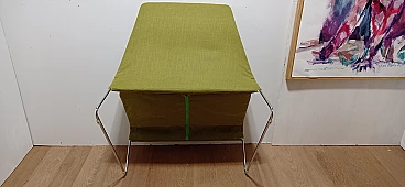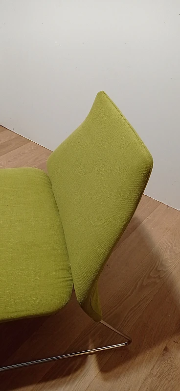 Beautiful Lazy Lounge 08 PLA80 armchair in apple green melange fabric (embossed cotton), series designed by Spanish designer Patricia Urquiola in 2005 for B&B Italia. Excellent state of preservation. Used for B&B Italia sample photos and catalogues. Chrome-plated steel rod structure and hard thermoplastic feet. Clean and undamaged, always protected with photographic film. The upholstery is fitted on a steel profile frame and soft internal padding in Bayfit® cold polyurethane foam. Lining in polyester fibre. The chair has a fabric cover that can be removed by stretching.