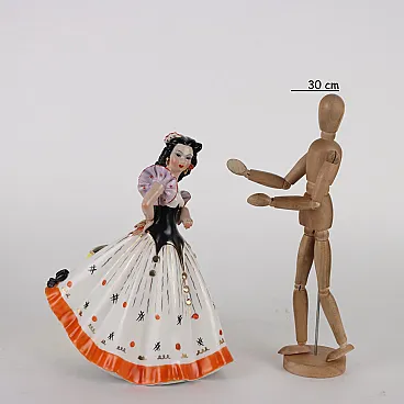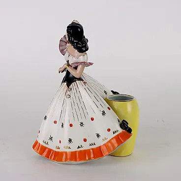 Polychrome painted ceramic sculpture depicting a damsel flanked by a small vase. Under the base signature of the manufactory "G. Girardi".