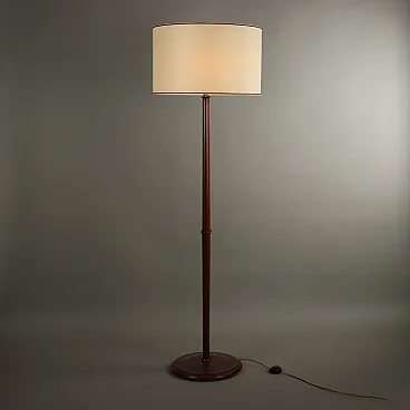 Floor lamp in beech, with brass details & fabric lampshade, 1950s