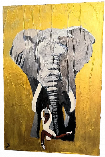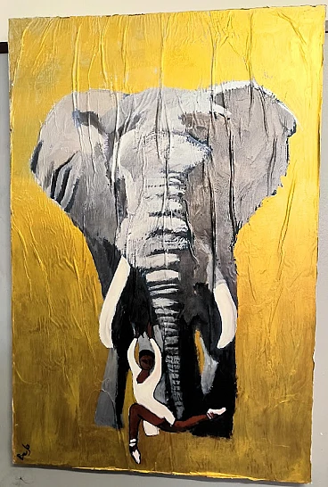 Bajo, Elephant and dancer, acrylic painting on canvas and paper, 2000