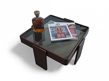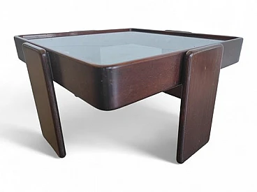 Coffee table in wood & smoked glass by G. Frattini for Cassina, 1970s