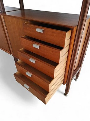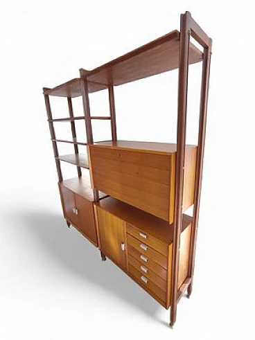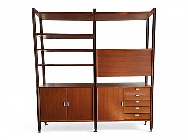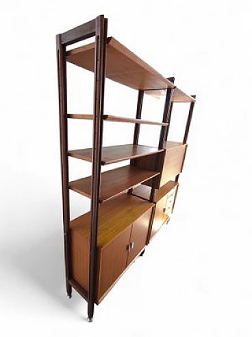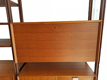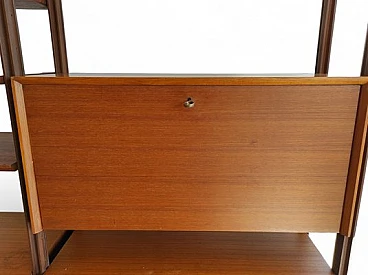 Swedish wooden bookcase with drawers & flap desk, 1960s