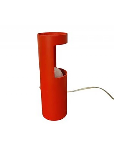 Table lamp in orange tin with sphere, 1950s