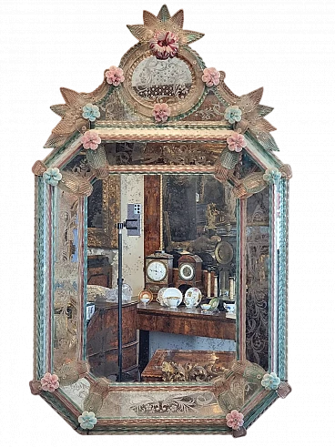 Venetian decorated and colored Murano glass mirror, early 20th century