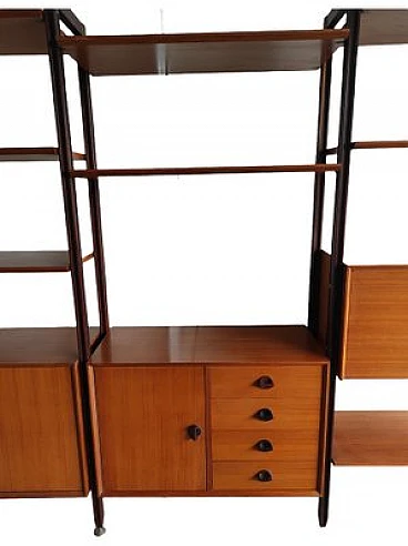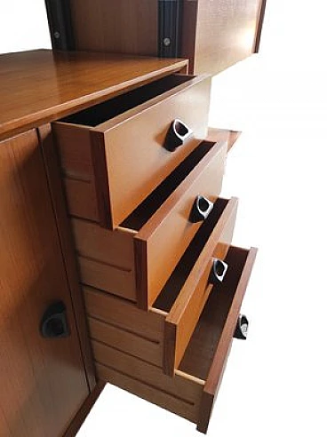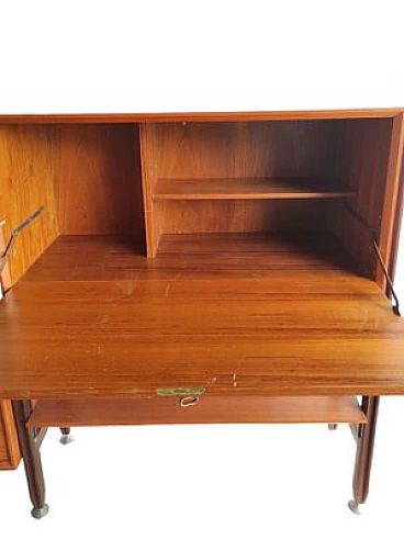 Teak bookcase with drawers & flap desk by George Coslin, 1960s