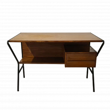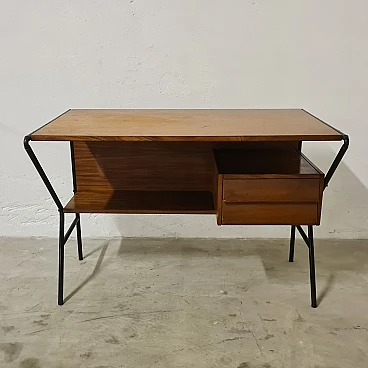 Desk attributed to Anonima Castelli, 1960s. Teak structure and black lacquered metal rod legs. Double side drawer. Its small size makes it ideal for any space. It has no structural defects but there are slight signs of time.