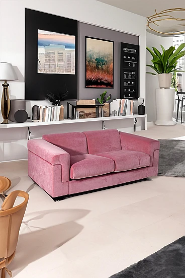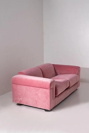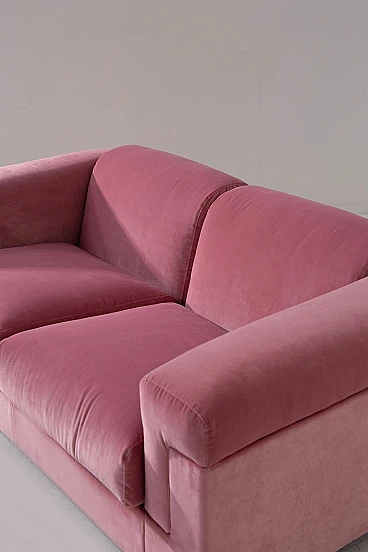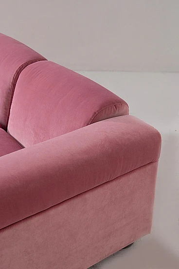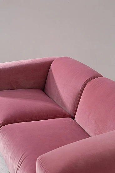 Designed by Valeria Borsani and Alfredo Bonetti for Tecno, the D120 sofa from the 1970s epitomizes the fusion of classic elegance and robust functionality. This piece, renowned for its comfort and style, features luxurious pink velvet upholstery that brings a warm texture and rich color to any space. Originally built to last, the sofa maintains its vintage charm with its strong, period-authentic structure complemented by minimalistic steel legs that add a modern contrast. Despite minor scratches and light wear consistent with its age, the sofa remains in excellent vintage condition, making it a versatile choice for both mid-century modern and contemporary interiors. Its plush comfort and timeless design make it a standout addition to any furniture collection.