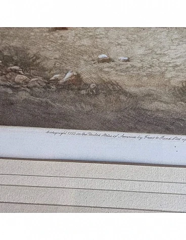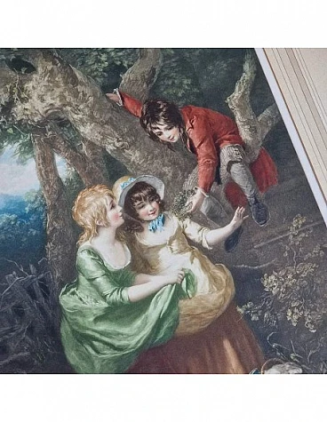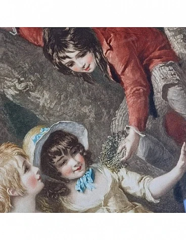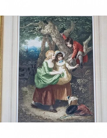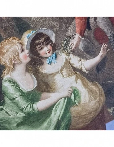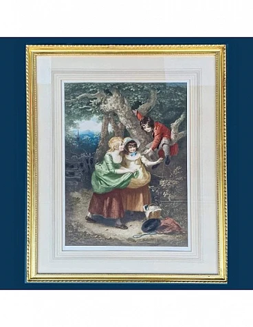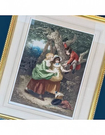 "Summer", engraving using the mezzotint technique (or "black manlara") printed with colored inks (coloured in the plate). The engraver is Loulis Busiere, engraver and lithographer born on 19 September 1880 in Denain, died on 24 September 1960 in Savigny-sur-Orge. A pupil of Leon Bonnat and Jacquet, he was presented at the Universal Exhibition of Panigi in 1900 with an engraving by Rubens. In 1904 he won the Prix de Rome (a scholarship) and in 1914 he participated in the Salon das Artistes Francais. From story by Henry Thomson. Signed in pencil lower right. Plate dated 1936. In a beautiful coeval gilded Hogarth frame. The print is accompanied by the certificate of authenticity.