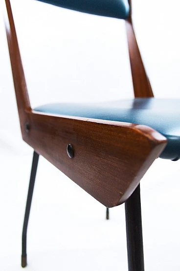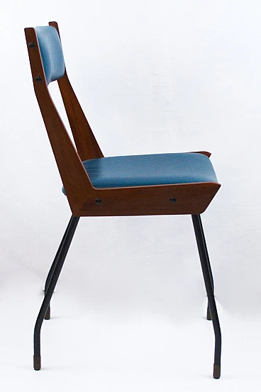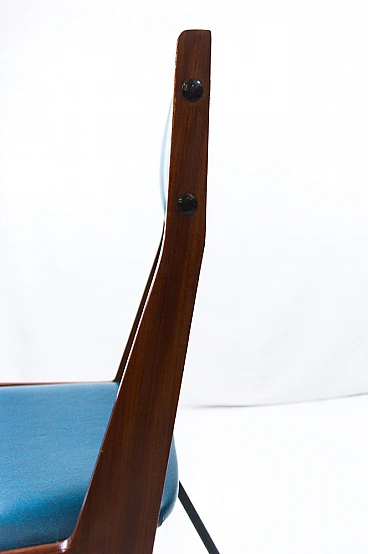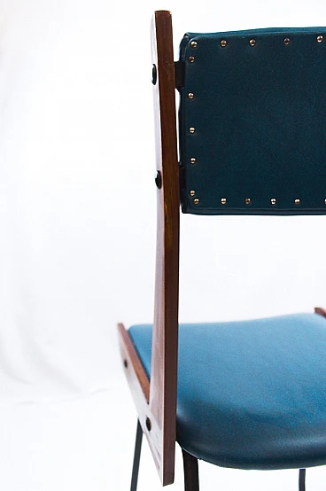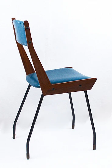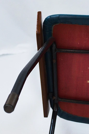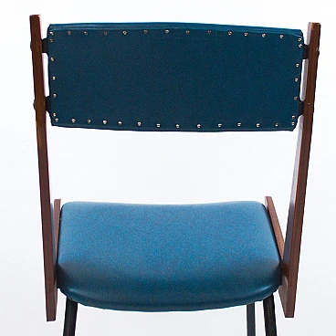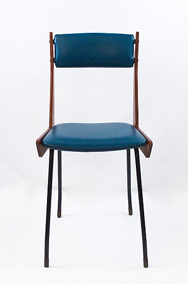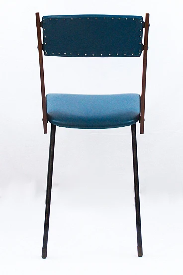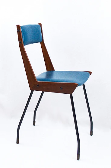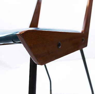 Chair in wood, black metal & blue leatherette by RB Rossana, 1950s