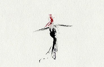 Bloody Roses Of Street is an original painting realized by Iranian Painter and Poet Parimah Avani in 2022. China ink and acrylic on ivory-colored paper. Hand-signed and dated. Excellent conditions. Presented in a Personal exhibition of "le Poesie Di Lutto e Di Lotta " (The Poems of Struggle and Mourning) curated by Leda Bartolucci in Turin, Italy, Bagni Pubblici, 2022. The artwork is poetically created through expressionistic brush strokes, the well-applied dry and watery strokes from the series “The Poems of Struggle and Mourning " in poetic style representing revolutionary figures in a minimalistic manner. The various layer is made perfectly by the expression of brushes, which makes this series unique: is deeply behind the dynamic emotion of each figure and abstract form, four colors here have metaphorical features; pink as woman, yellow as hope, silvery as resistance, and in this artwork red as blood. The panoramic lines inspired by Persian calligraphy created motifs and repetition harmoniously in a neat composition, each reminding mysterious words. The style of Persian calligraphy and her knowledge of poetry let her create a visual poem in an expressionistic style, which is congruent with the title and her experience, the use of space and maintaining an empty background and foreground intentionally have been made to emphasize the solitude and loneliness of figures and at the same time connect to oriental calligraphy in which empty space has the same value as the filled one, succeed to create pure incarnation. Her artworks artwork has evident characteristics, firstly strongly inspired by Tachisme's “Abstraction lyrique" and artworks of Henri Michaux, and Hans Hurting secondly oriental Persian calligraphy of poems style is evident in her artworks, finally dynamic sensation of revolutionary art, the slogan of street wall transformed into contemporary language and its features intuitively are subtly inserted. Parimah Avani (Born1988) is an Iranian Poet and visual artist, since 2009 has lived and studied in Italy, after graduating from the Fine Art Academy of Rome in painting continued her research on “Aesthetic of Talisman and Magics Text and Craft” and took her Ph.D. title in the Sapienza University of Rome in 2020. From her have been published books and illustrations of books. The Last book of her “ The Magic Scroll of Antalus” published in 2020 in Iran has been among the finalists for the “Shamlu” literature and Poetry award in 2021. Her main camp study has been mythology, ritual, and magic, and her art is strongly connected to the transfer of local and traditional folk art and its symbols into the contemporary language in a poetic style. In these series evidently, Avani has chosen Persian calligraphy for this transformation.