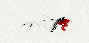 Flowering Bloody Rose is an original painting realized by Iranian Painter and Poet Parimah Avani in 2022. China ink and acrylic on ivory-colored paper. Hand-signed and dated. Excellent conditions. Presented in a Personal exhibition of "le Poesie Di Lutto e Di Lotta " (The Poems of Struggle and Mourning) curated by Leda Bartolucci in Turin, Italy, Bagni Pubblici, 2022. The artwork is poetically created through expressionistic brush strokes, the well-applied dry and watery strokes from the series “The Poems of Struggle and Mourning " in poetic style representing revolutionary figures in a minimalistic manner. The various layer is made perfectly by the expression of brushes, which makes this series unique: is deeply behind the dynamic emotion of each figure and abstract form, four colors here have metaphorical features; pink as woman, yellow as hope, silvery as resistance, and here red as blood. The panoramic lines inspired by Persian calligraphy created motifs and repetition harmoniously in a neat composition, each reminding mysterious words. The style of Persian calligraphy and her knowledge of poetry let her create a visual poem in an expressionistic style, which is congruent with the title and her experience, the use of space and maintaining an empty background and foreground intentionally have been made to emphasize the solitude and loneliness of figures and at the same time connect to oriental calligraphy in which empty space has the same value as the filled one, succeed to create pure incarnation. Her artworks artwork has evident characteristics, firstly strongly inspired by Tachisme's “Abstraction lyrique" and artworks of Henri Michaux, and Hans Hurting secondly oriental Persian calligraphy of poems style is evident in her artworks, finally dynamic sensation of revolutionary art, the slogan of street wall transformed into contemporary language and its features intuitively are subtly inserted. Parimah Avani (Born1988) is an Iranian Poet and visual artist, since 2009 has lived and studied in Italy, after graduating from the Fine Art Academy of Rome in painting continued her research on “Aesthetic of Talisman and Magics Text and Craft” and took her Ph.D. title in the Sapienza University of Rome in 2020. From her have been published books and illustrations of books. The Last book of her “ The Magic Scroll of Antalus” published in 2020 in Iran has been among the finalists for the “Shamlu” literature and Poetry award in 2021. Her main camp study has been mythology, ritual, and magic, and her art is strongly connected to the transfer of local and traditional folk art and its symbols into the contemporary language in a poetic style. In these series evidently, Avani has chosen Persian calligraphy for this transformation.