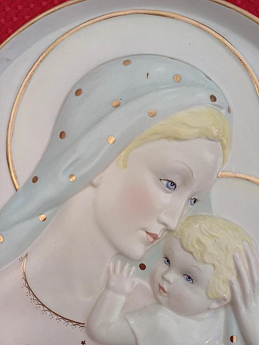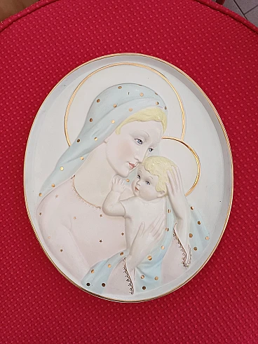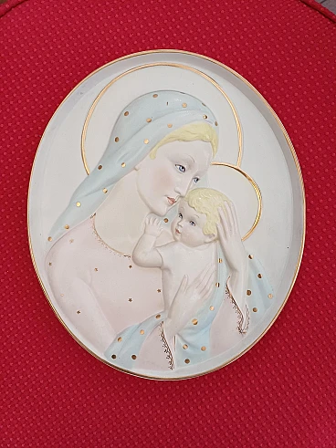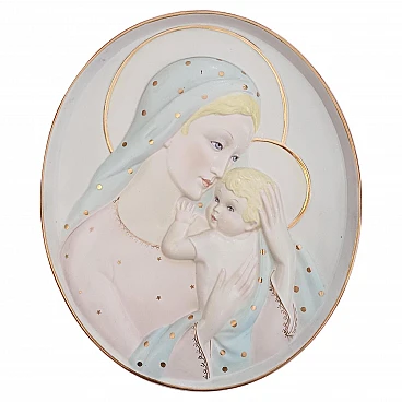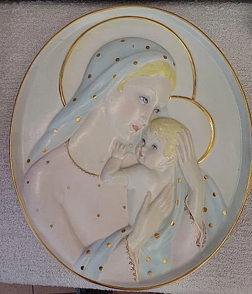 Ceramic plate of Madonna and Child by Lenci, 1950s